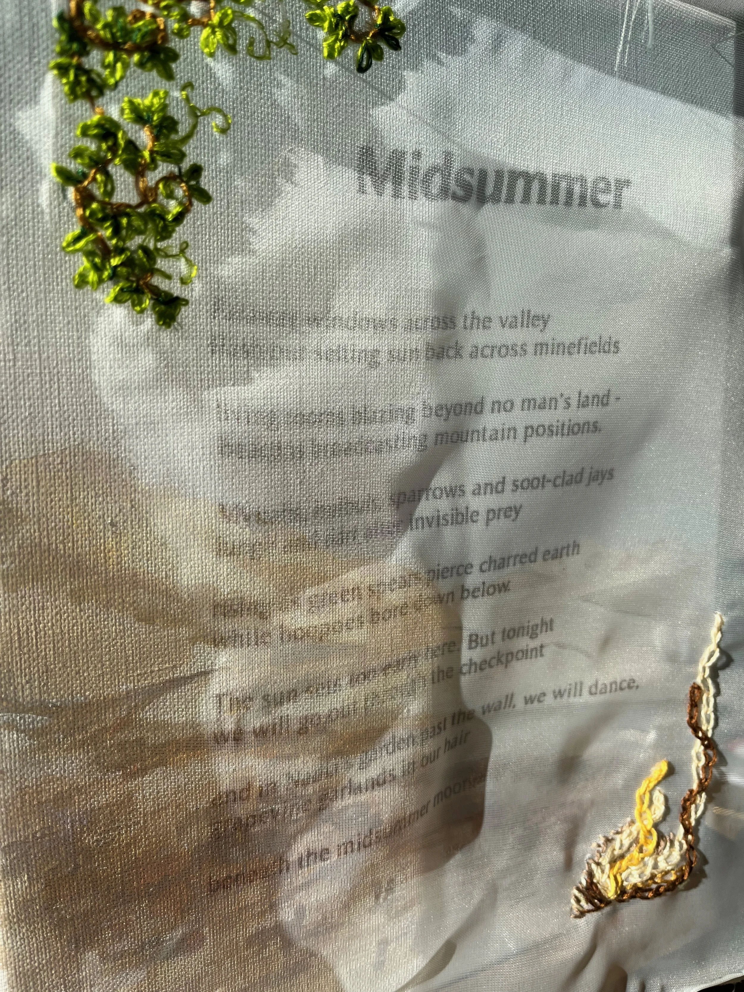 Nekkerspoel is a photographic collage; the other works are mixed media using textile, stitch, paper (kneaded and raw), acrylic paint and ink.